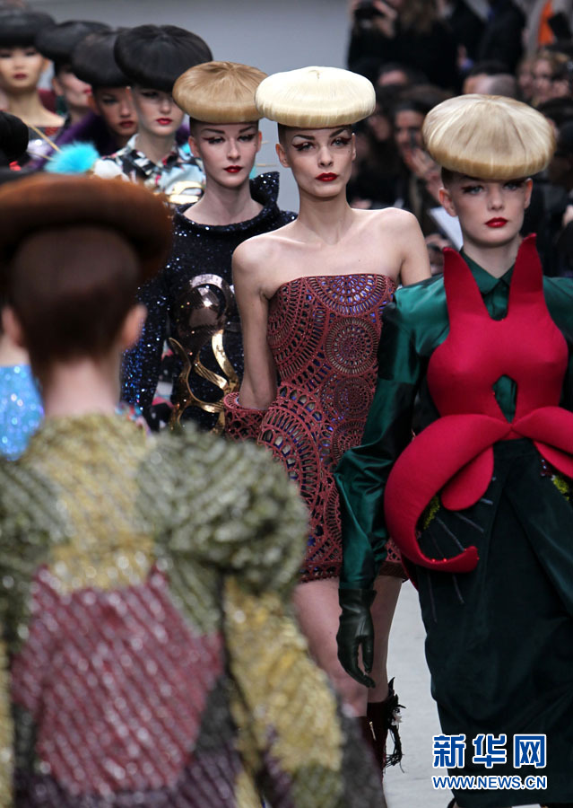 3月3日,模特在巴黎2011-2012秋冬成衣展上展示印度设计师Manish Arora的秋冬新品。新华社记者高静摄