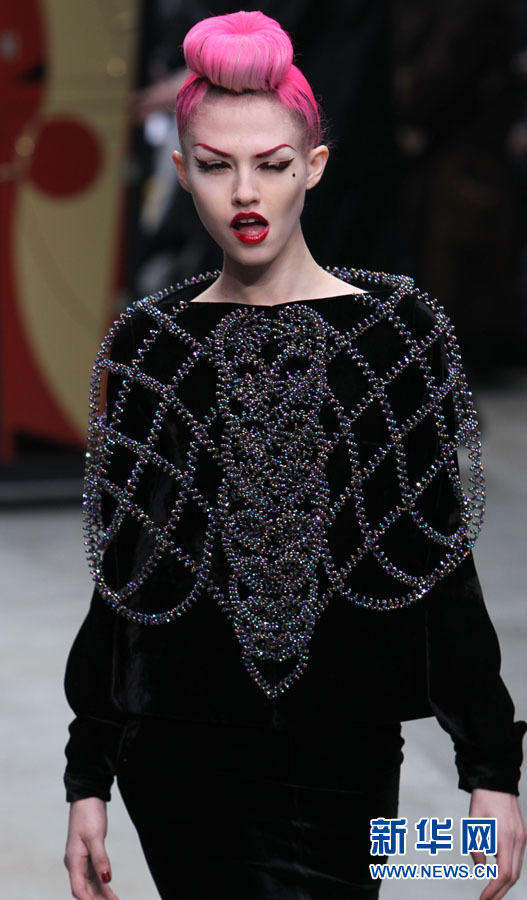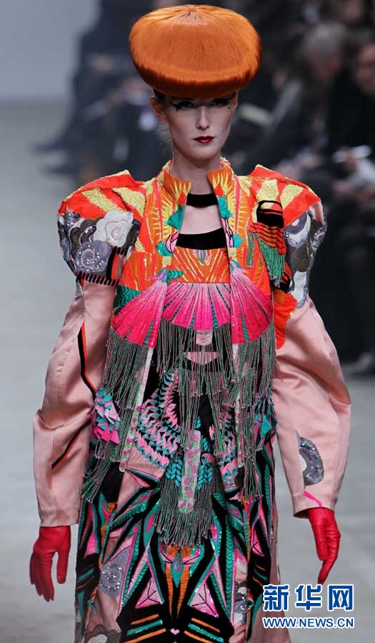 3月3日,模特在巴黎2011-2012秋冬成衣展上展示印度设计师Manish Arora的秋冬新品。新华社记者高静摄