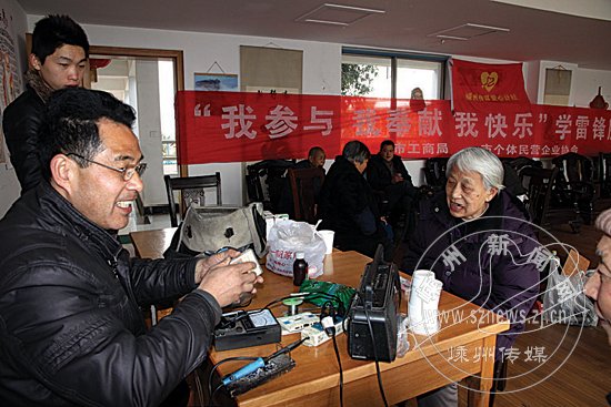 任良师傅昨天身体不舒服,阳光山庄和剡湖工商所的工作人员以为他不能来到现场了,都开始通知有修理小家电需要的老人改天再来,但是到9点多钟,任良一脸笑容地出现在了老人们的面前,“我来啦,有什么需要修理的都拿来吧!”