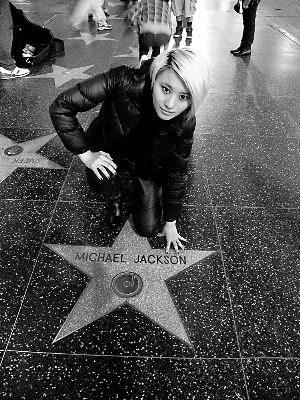 尚雯婕到洛杉矶游学期间,不忘到星光大道膜拜下迈克尔·杰克逊的星星。