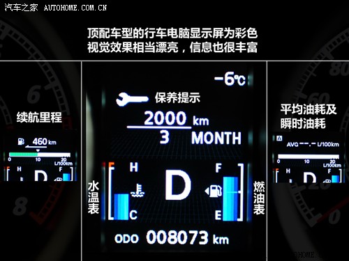 翼神行车电脑比较强大,不仅视觉效果出色而且可以反映出很多车辆信息,如水温、燃油量、续航里程以及保养提示,丰富的信息可以让驾驶员更好的了解自己车的状况。