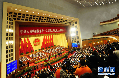 3月5日,第十一届全国人民代表大会第四次会议在北京人民大会堂开幕。 新华社记者任勇摄