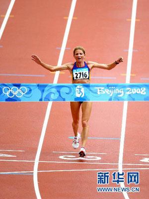 图为2008年8月17日,迪塔在北京奥运会女子马拉松比赛中以2小时26分44秒的成绩率先冲过终点,夺得冠军。新华社记者刘大伟摄