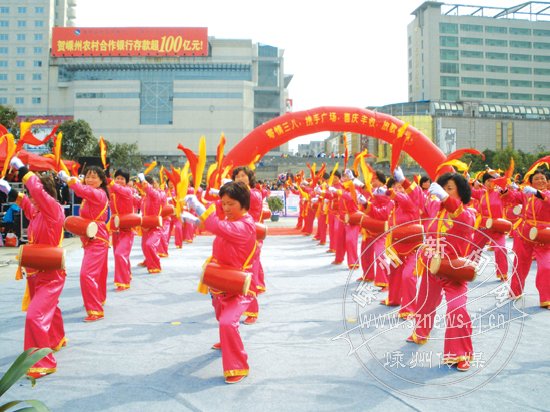系列活动内容包括《和谐“十一五”、给力“十二五”》嵊州妇女儿童工作图片展;2011年“三八” 纪念活动暨“寄情三八 放歌憧憬”广场文艺表演;“预防和制止家庭暴力,营造和谐家庭环境”广场咨询宣传活动等。活动以丰富的内容,新颖的形式,共同庆祝“三八”国际劳动妇女节。市领导何国英、董慧珍、夏春燕、黄未到现场指导并观看了演出。图为文艺表演现场。