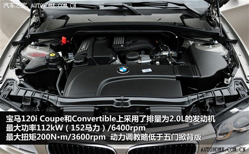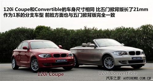宝马1系轿车在国内骄人的销售业绩,加强了宝马继续进军国内市场的信心。在去年11月还推出了Coupe和Convertible车型。比较遗憾的是在国内动力更强的135i车型没能出现在我们面前,而是将120i引进到了国内。