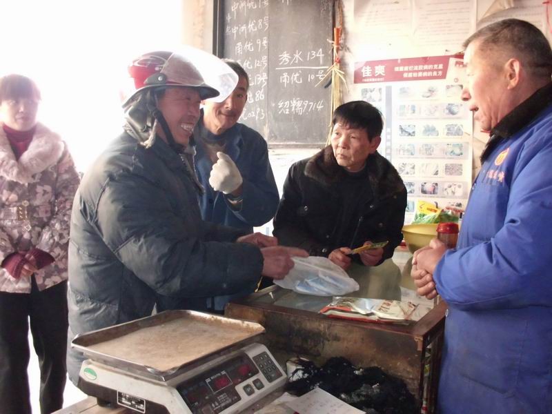 (图为嵊州市黄泽镇大桥头农资店农户买种子现场)
