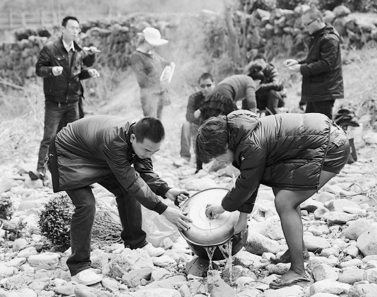 昨天,嵊州市里南乡的一些山林和小溪边不时走过一群群远足的市民,不少市民还在溪滩边野炊。