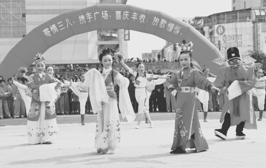 3月8日下午,嵊州市妇联“三八”纪念活动暨“寄情三八、放歌憧憬”文艺表演在该市广场举行,来自该市的各级妇女干部、各行各业女性代表等近2000人共同参与。图为活动现场。