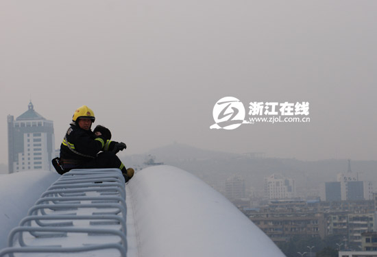 浙江在线03月10日讯 (通讯员 余昌龙 吴凯)3月9日傍晚,浙江省嵊州市的嵊州大桥拱柱上演绎了一场生死营救,公安民警、消防战士避开下班高峰时段的不利因素,合力将一名站立在离桥面30米高的桥拱顶部“想冷静一下”的男子马某安全救下。