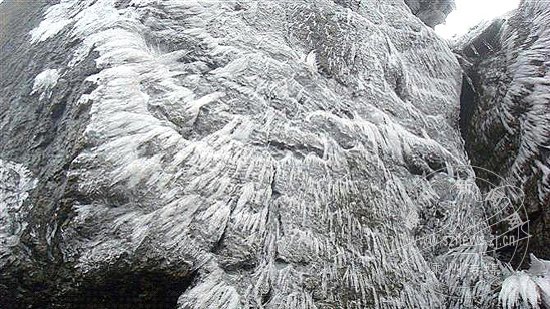 “快来看呀!这里有很多冰,很好看呵!”听到率先冲顶的朋友甩下来激动人心的话,我加快步伐向山顶冲去……