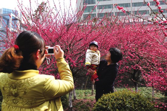 温暖的春天看似就在身边,但冷不防又被冷空气撞了一下腰。不过,这样的过程也属正常,每年早春时节,都有这样的反复,温暖的天气好像总不肯爽爽快快直接来到。但无论怎么反复,春天毕竟已经到了,梅花、杏花、玉兰花已次第开放,向阳处的柳枝也绽出了新芽,惹得越来越多的市民走向户外,感受春的气息(如图)。