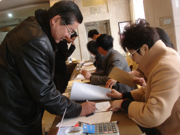 据了解,参加市政协十三届五次会议的政协委员有252人,列席119人,共371人。图为报到现场.