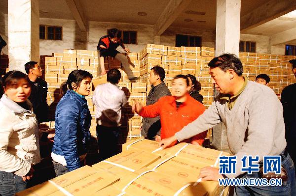 3月16日,浙江省诸暨市盐业仓库内,工作人员有序地为经销商配送食用盐。当日,中国盐业总公司发布声明称,已向各地下属盐业公司下发紧急通知,要求各地盐业公司立即启动应急工作机制,加强生产组织和销区市场管理,确保食盐供给。中盐总公司还表示,目前食盐储备十分充足,完全能够满足群众需求。 新华社发(郭斌 摄)