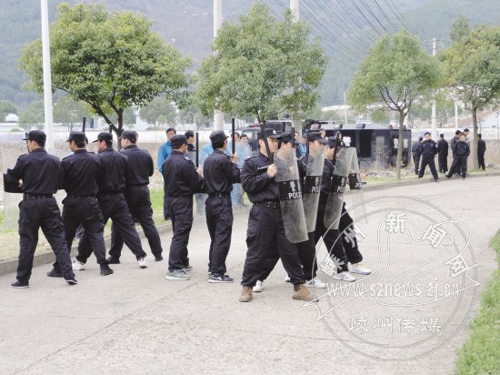 近日,市公安局积极开展“大走访”活动,走进社区,走进企业,向市民展示新型警务装备、演练各种防暴队形,通过警民之间互动,展示了公安机关民警良好的精神风貌和维护社会治安稳定的能力。图为市公安局治安大队、巡特警大队走进企业演练的场面。