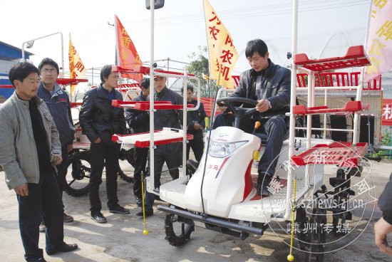 在近日召开的市育秧技术培训现场会上,崇仁镇赵马村的种粮大户被一台新式自动水平插秧机所吸引。据了解,随着国家对农机购置补贴政策的进一步深入,我市种粮大户购买自动化机械的积极性非常高。截至2010年底,我市已拥有各式水稻插秧机150台,水稻机械化插秧面积今年有望突破68000亩。