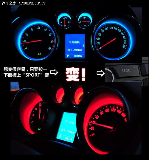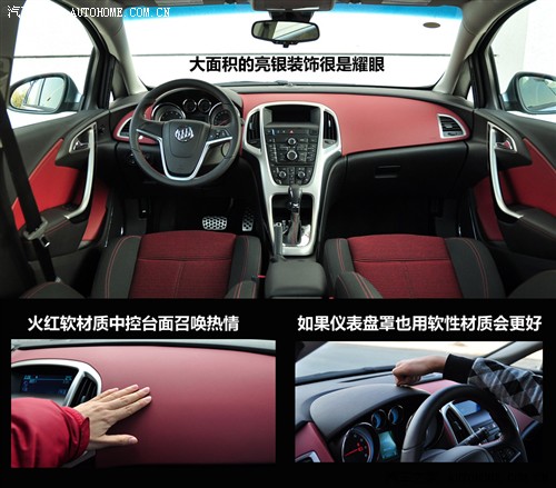 英朗XT的内饰采用环抱式设计,1.6T车型的仪表台和座椅还使用了红黑配色,仪表盘还可以根据选择不同的模式而改变颜色,将其运动的个性毫无保留的表现出来。