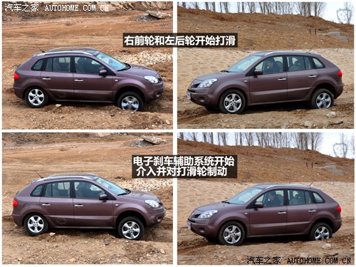 科雷傲采用的智能四驱系统可以在40km/h以下通过驱动模式选择按键对驱动方式进行两驱、自动和四驱三种模式的切换。科雷傲的电子刹车辅助功能表现较为明显的车型,所以在面对对角车轮悬空的状态下,通过对悬空的车轮进行制动,将驱动器传递给有附着力的车轮,保证驱动力并能够是车子向前行进。