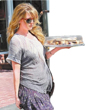 凯特·哈德逊日前挺4月肚,不修边幅上街买甜点。