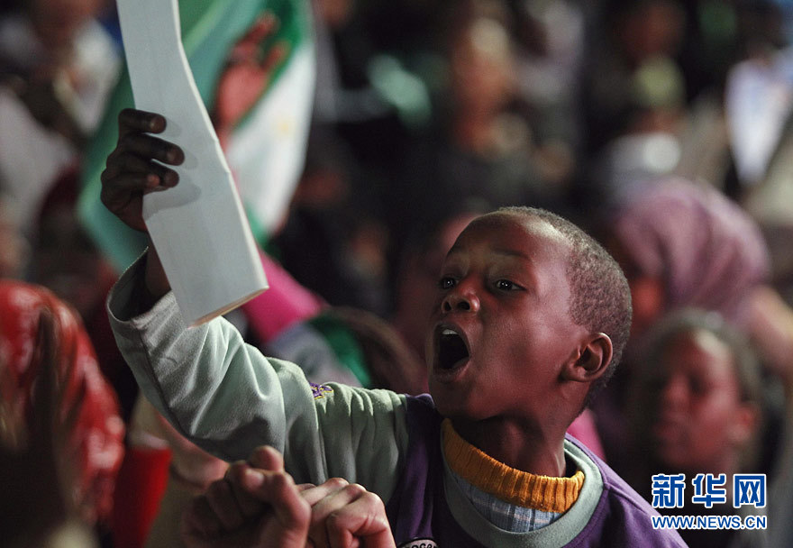 3月31日,在利比亚首都的黎波里,一名儿童跟随家长参加保护利比亚领导人卡扎菲一个住所的“人盾”行动。利比亚国家电视台当日转引利比亚领导人穆阿迈尔·卡扎菲的讲话。卡扎菲说,他“不是该下台的那个人”,相反,那些动用军队空袭杀害利比亚军人的西方国家领导人“该立即下台”。新华社/路透