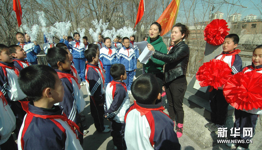 2011年3月30日辽宁省锦州市古塔区士英小学600名少先队员来到辽沈战役战斗英雄梁士英墓前举行了一次别开生面的“祭奠英灵牢记传统”中队会,接受革命传统教育和爱国主义教育。新华社发