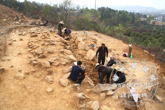 近日,由浙江省文物考古研究所、嵊州市文物管理处联合组成的考古队在我市三江街道缸山村发现一处春秋时期的土墩石室墓。墓葬位于外山头半坡上,封土呈馒头状,直径17米。石室呈狭长形,内长12米,宽1.2—2米,石室外围堆放大量块石形成护坡。出土器物有原始瓷碗、印纹硬陶罐等。初步判断该墓为春秋时期越国墓葬。