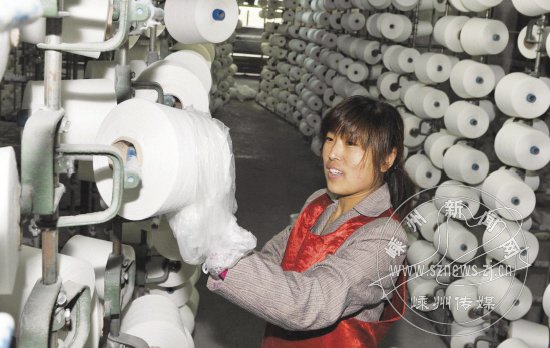 浙江纯棉纱交易价格从去年最高时的每吨56000多元,下降到目前的43000余元,这对我市甘霖镇、里南乡上千家纯棉个私加工户来说,是一大利好。图为昨日,甘霖镇殿前村一纯棉加工点的纺织牵经女工正在作业。