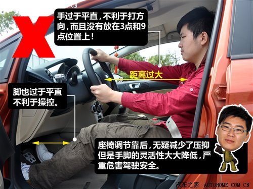 误区:驾驶姿势不正确最常见的现像是座椅过于靠前,这现像新手尤为明显。作为新手开车上路,他们都不由得有点紧张,于是他们的潜意识会认为越贴近方向盘,脚越靠近踏板会更加安全一些。另一种常见的错误姿势自然是座椅相对靠后了,这种现像常会出现在长得高大的新手里面。由于身材高大,车舱的空间也有限,因此他们会有一些压抑感,这个时候为了大长腿能够得到伸展,他们会把座椅调校得十分靠后,看上去是十分安逸的感觉,不过其实是暗藏危机。