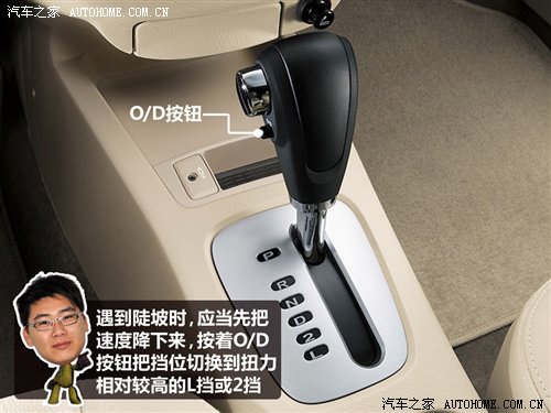 4.自动挡车型爬坡时遇到的问题。使用D挡爬坡时,如果感觉到怎样踩油门也不能使发动机输出的动力像行驶在平坦路面一样强劲或是动力已经显得不足的时候,应当先把速度降下来,然后把挡位切换到扭力相对较高的挡位。这样不仅省油,还能减少或避免发动机的磨损。部分4AT变速箱会配有O/D按钮,这个时候需要先降低速度,然后按着O/D按钮才可以切换到高扭力的低速挡位。