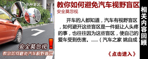 由于盲区的存在,极易造成驾驶者的判断以至操作失误,并由此导致交通事故的发生,故汽车视野盲区被视为驾驶员获取路面信息的最大障碍。想了解怎样才能避免汽车视野盲区的话,那不妨点击上面的图片,直接浏览相关的内容,在此我也不再赘述了。