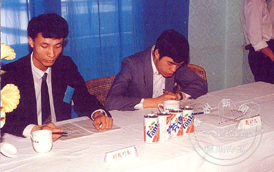 1990年嵊州被任命为“全国围棋之乡”,并举办了第三届全国围棋名人赛,马晓春(左二)任裁判长,杨维信(左一)任副裁判长。