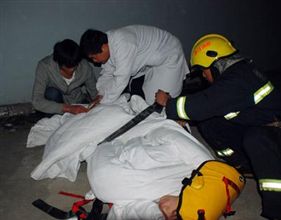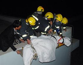 在了解现场情况后,消防官兵携带安全绳、担架等救人器材,协助医护人员一同下到女子被困屋顶。“她现在神智还比较清醒,眼睛还能睁开,暂无生命危险,但腰部和双脚严重摔伤,必须马上送往医院救治!”医护人员对女子的身体状况做了检查之后,提醒消防官兵加快救人速度。时间就是生命,两名消防官兵立即将女子固定在担架上,接着接力将担架抬到隔壁平台上。凌晨1时11分,在消防官兵的努力救援下,受伤女子终于被顺利送往市人民医院抢救。