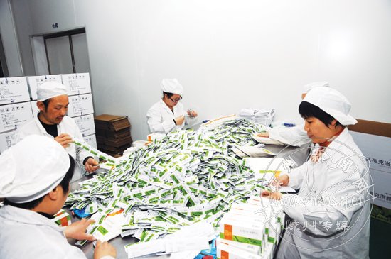 浙江昂利康制药有限公司是国内头孢菌素类原料药重要生产基地。近年来,公司加快转型升级步伐,走持续创新之路,打造企业核心竞争力,取得明显成效,2010年销售收入7.4亿元,增长率达35%。图为昂利康公司药品包装生产线一角。