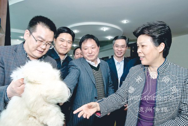 葛慧君一行首先来到市畜产品有限公司,该公司为主培育的“浙系长毛兔”去年7月通过国家新品种审定,成为我国自主培育的第一个长毛兔国家级新品种,葛慧君听了表示赞赏,并鼓励企业继续加大长毛兔良种繁育,推动畜禽新品种产业化,带动更多的兔农增收。在浙江华发茶业有限公司,葛慧君实地踏看了公司的生产和包装车间,希望华发公司立足质量管理和品质提升,不断拓展国际市场,扩大出口。