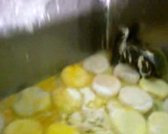 工人:做玉米馒头,玉米放多了好,(玉米放多了好,你这里放了多少?)我这个只能放一碗。(工商部门检查,加色素没有问题?)那要抓住的,加色素,来查的时候,肯定要藏起来,(肯定要藏起来?)不能给他们看见,(可那是食用色素呀?)食用色素也不能给他查出来,查出来要罚死的,他这里检查来的时候,也规定过,不允许放色素的,(我只用一点点?)也不行,他明文规定不允许放这种色素的。