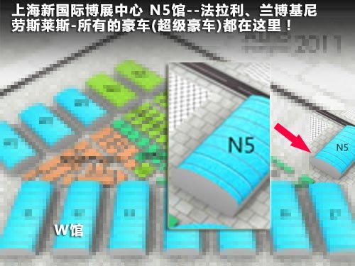 上海新国际展览中心分为东西两个室内展馆,以Y字形结构分布。室内加上室外的展馆面积达到了20万平米,比上届展出面积更大。这也给了汽车厂家更多的表演空间,其中本届车展单独为顶级豪华车开辟了N5号馆,让各位终极豪车的fans们可以在一个展馆内就看遍全部豪车