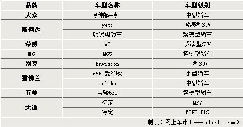最为值得关注的就是上海大众的战略车型新帕萨特,该车以全新的外观和上海大众帕萨特系列车型的优异口碑将强势登陆此次车展。其次,上海通用雪佛兰、别克两只品牌也将贡献3款重量级车型。自主品牌方面宝骏首款轿车630、荣威收款SUV W5也将成为这一次车展现场的最大看点。