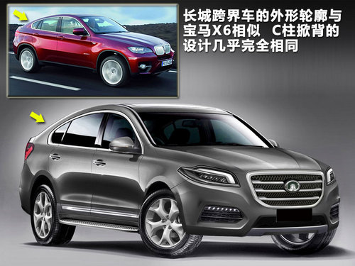 随着人们多元化的需求,跨界这个词在逐步被人们所熟悉,一车多用想必就是为了满足“跨界”这个词。每个汽车厂商也都在寻早自己的跨界路线。长城汽车作为国内知名的自主汽车厂商,也将推出一款跨界车型,该车将于今年上海车展首发。从我们目前得到的图片看,长城跨界车很大程度上模仿了宝马X6和奥迪Q7。