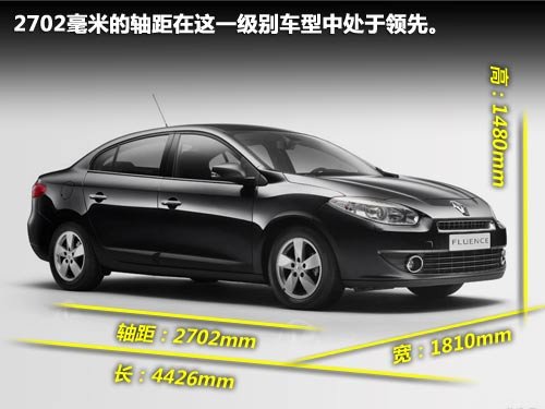 作为中国最早的专业国际汽车展览会和亚洲最大规模的车展,上海车展将于2011年4月21日隆重开幕。届时,雷诺将带来目前市场上2.0L排量中级车中空间最大的车型——雷诺Fluence,将在车展上正式亮相,并定名为风朗。雷诺风朗是基于三厢梅甘娜开发的一款“大块头”紧凑级车型,虽属于紧凑车型,但4620毫米×1810毫米×1480毫米的整车尺寸颇具亮点。而轴距更是达到了2702毫米,在这个级别的车型中绝对处于领先地位,风朗的内部空间自然不用怀疑。