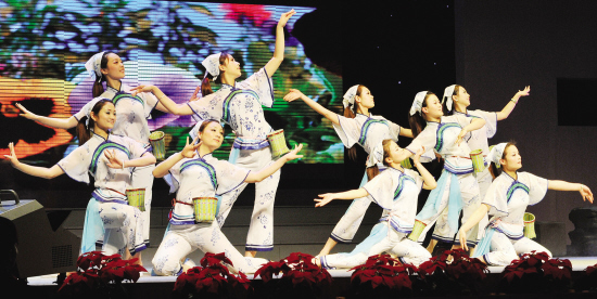 昨晚,第八届中国嵊州国际书法朝圣节文艺晚会暨“唱游长三角·走进嵊州”大型电视综艺活动在嵊州天乐集团举行,《越乡春韵》、《兰亭序》、《王羲之》等一批越乡特色节目,向到会的各界来宾进行了献演。 (记者 张亮宗 摄)