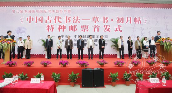 4月15日上午,由中国邮政集团公司发行的《中国古代书法—草书·初月帖》特种邮票首发式在我市举行。省邮政公司总经理鞠勇和市委书记盛秋平共同为特种邮票《初月帖》揭幕。