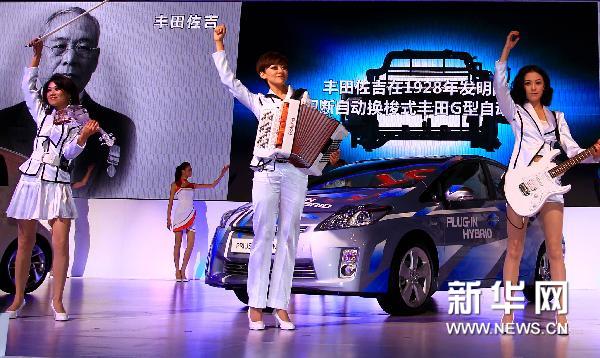 4月19日,模特在丰田汽车公司展台表演。当日,第14届上海国际车展在上海新国际博览中心拉开帷幕。以“创新·未来”为主题的本届车展吸引来自全球20个国家和地区的2000家中外汽车厂商参展,创历届上海车展之最,也是今年全球规模及影响力最大的汽车展之一,本次车展将展出各种车辆1100辆,包括全球首发车75辆,预计观众达70万人次。新华社记者 陈建力 摄