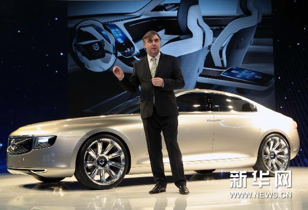 4月19日,沃尔沃汽车公司设计副总裁彼得·霍布里在介绍概念车“天地”的设计。当日,第14届上海国际车展在上海新国际博览中心拉开帷幕。以“创新·未来”为主题的本届车展吸引来自全球20个国家和地区的2000家中外汽车厂商参展,创历届上海车展之最,也是今年全球规模及影响力最大的汽车展之一,本次车展将展出各种车辆1100辆,包括全球首发车75辆,预计观众达70万人次。新华社记者 袁满 摄