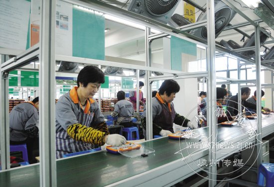 今年来,三鼎工具有限公司投资200多万元,上马棘轮和刀杆等多条生产线。棘轮生产线已于3月底投产,刀杆生产线也将于本月底投产。与此同时,“三鼎工具”还不断开发新产品,工具设计日趋人性化,便于操作。目前,该公司产品畅销欧美市场。图为三鼎工具生产线一角。