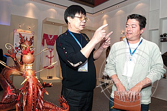 宓风光的艺术气质到哪都是比较吸引眼球的,况且,他玩的泥巴又是随心所欲,一团泥巴在他手中,一会是个满面尘霜的老头,一会是个天真活泼的男孩,一会又是充满异域风情的阿拉伯少女。物随心转,境由心造,一块泥巴在宓风光手中硬是变幻出不同性格不同年龄不同身份的男女老少。他的身边是绍兴的酿酒工艺,两份各有千秋的工艺,吸引了许多观看者的眼球和脚步。
