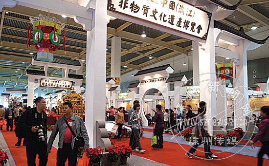 白墙黛瓦的艺术村展馆,这次是绍兴馆的馆中之馆。350平方米的绍兴馆中,艺术村有180平方米,占了一半面积。