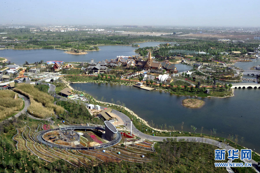 将于4月28日开幕的2011西安世界园艺博览会的园区位于西安浐灞生态区。世园会园区占地418公顷,水域188公顷,是历届世园会中面积最大、水域最大的一届。其中,作为园区的标志性建筑之一的长安塔,高99米,共13层,采用唐朝宝塔正方形的平面形制,由中国工程院院士张锦秋担纲设计。登塔极目远眺,饱览园区景致,尽享“天人长安,创意自然”的秦风唐韵。新华社记者 鲁鹏 摄