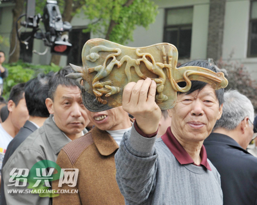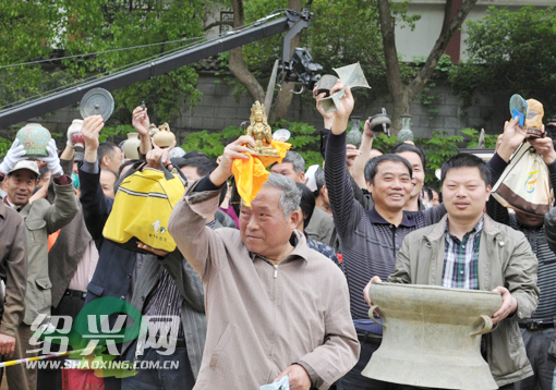 4月28日,嵊州市委宣传部和中央电视台《寻宝》栏目组共同主办的《寻宝•走进嵊州》活动在嵊州市艺术村举行,当日共有500位民间者带千件收藏品参加“民间国宝”海选。