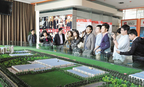 4月22日,由嵊州市总商会组织的十余位嵊州青年企业家学习外出嵊商经验考察团,专门赴安徽省合肥市和阜阳等地考察嵊州籍在外投资商的成功创业经验。据了解,其中合肥安徽鸿路钢结构(集团)股份有限公司为安徽省排名前五位的上市企业,阜阳市银河置业有限公司为当地大型的房地产投资商。图为昨日嵊州青年企业家考察团在合肥安徽鸿路钢结构(集团)股份有限公司考察学习的现场。 【来源:天天商报】