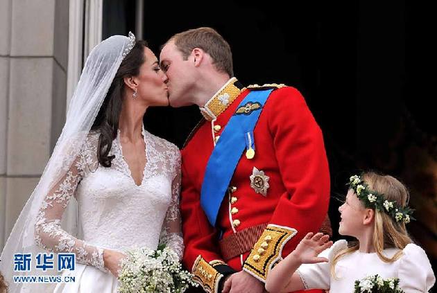 4月29日,英国威廉王子和凯特·米德尔顿举行婚礼后在白金汉宫的阳台上接吻。英国威廉王子和凯特·米德尔顿的婚礼当日在威斯敏斯特教堂举行。 新华社/英国报联社