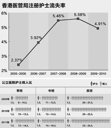 调查显示,香港公立医院一直存在护士流失问题,流失人数已经由2005年的约300人,增加到2010年的近1000人。